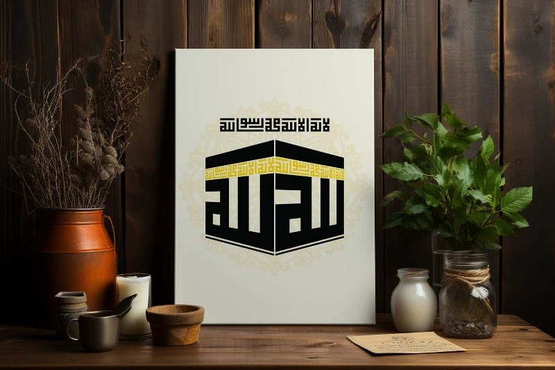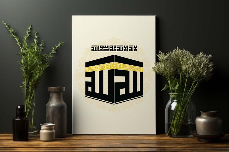 Kaaba Decor written ALLAH Name in Kufic Printed on canvas